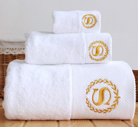 XIAOAO-Conjunto de toallas blancas con logotipo bordado personalizado, Toalla de baño de lujo, toalla de Spa 100% de algodón, Terry